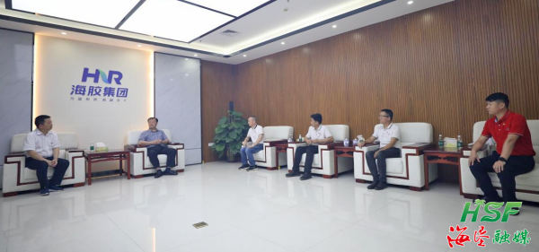 海南橡膠領(lǐng)導(dǎo)與專家團(tuán)親切交談。黃薇 攝
