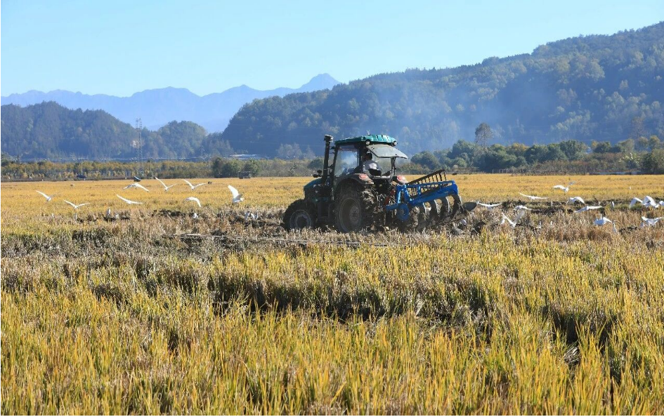 12月7日,云南省騰沖市和順鎮(zhèn)大莊村農(nóng)民駕駛農(nóng)機翻耕稻田,準備種植冬季馬鈴薯。