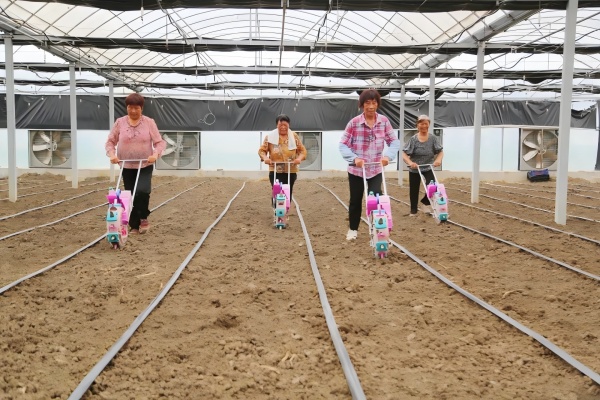 走進大棚,只見一臺臺小巧靈活的播種機在工作人員的操控下穿梭于田間。紅色醒目的播輪在地上行走自如,發(fā)出陣陣歡快的聲響,將一粒粒黑豆種下。這臺機器以其輕便快捷的特點,大大提高了播種效率。“它不僅能夠?qū)崿F(xiàn)精準(zhǔn)播種,確保每顆豆子都能以相同的間距和深度植入土壤,還為后續(xù)的統(tǒng)一管護提供了極大的便利。”在現(xiàn)場,技術(shù)員鄒品才介紹。