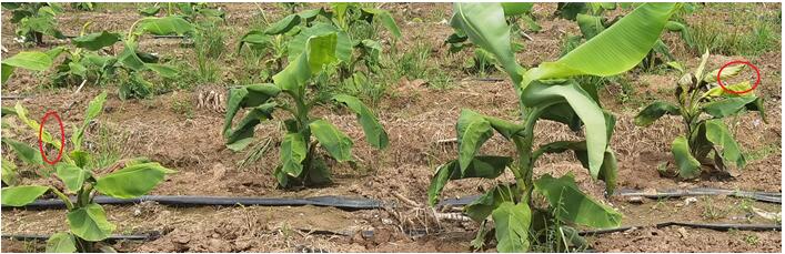 香蕉病蟲(chóng)害防控項(xiàng)目專家組提醒產(chǎn)區(qū),應(yīng)加強(qiáng)蕉園苗期花葉心腐病的防控。