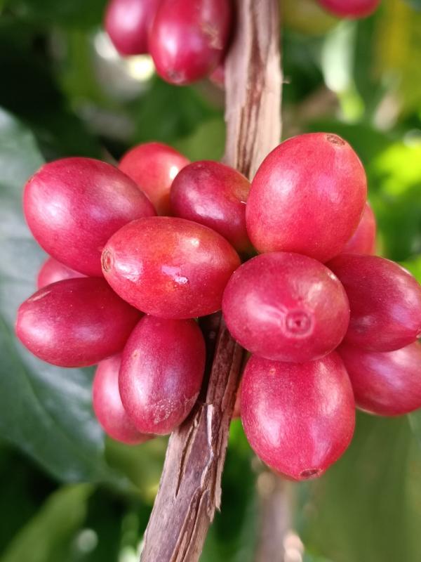 “德熱4號”系云南省德宏熱帶農業(yè)科學研究所從葡萄牙熱帶研究所(IICT)咖啡銹病研究中心(CIFC)引進育種材料SL1-Sarchimor選育而成,完成了品種比較試驗、區(qū)域性試驗和生產性試驗。“德熱4號”具有抗銹病、品質優(yōu)良、豐產穩(wěn)產、生勢強、商品豆粒度大等優(yōu)點,經現場測產,芒市試驗點平均單株鮮果重6.86kg,按畝植333株折合,畝產鮮果2284.38kg,保山試驗點平均單株鮮果重5.84kg,按畝植333株折合,畝產鮮果1944.72kg?!暗聼?號”適宜在我國云南德宏、保山、臨滄、普洱等小??Х纫酥矃^(qū)種植。