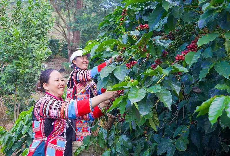 進入12月,云南省普洱市西盟縣力所鄉(xiāng)的八千余畝咖啡林陸續(xù)披上紅裝,迎來采收季??мr(nóng)們穿梭林間,熟練地采摘顆顆紅潤的咖啡鮮果,山野間洋溢著豐收的喜悅。