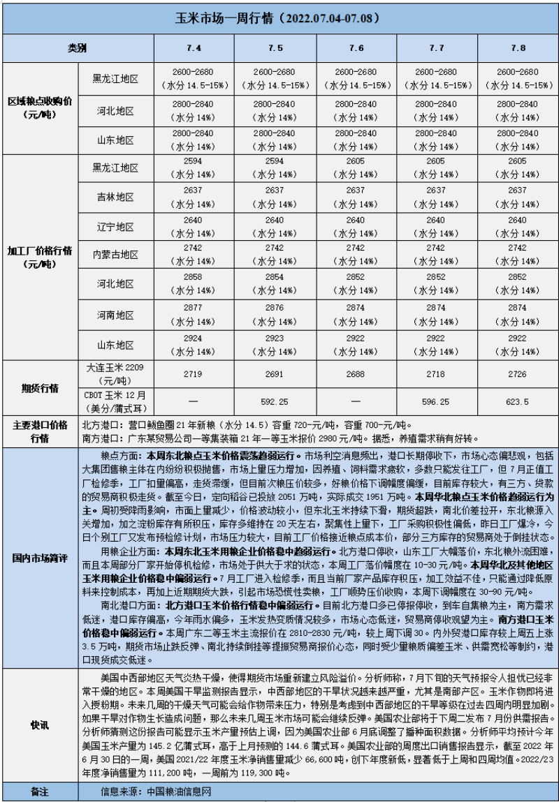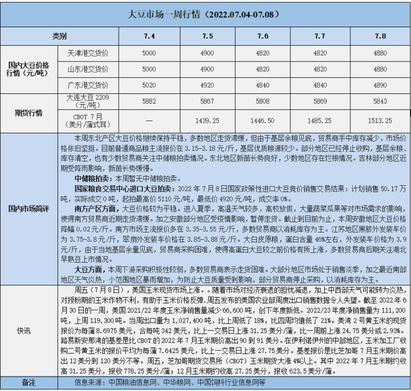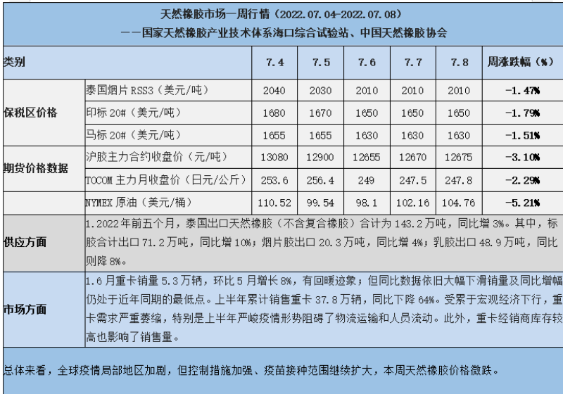 天然橡膠、大豆、玉米市場一周行情(2022.07.04-07.08)