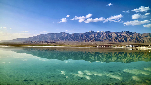 大柴旦翡翠湖位于青海省海西蒙古族藏族自治州境內(nèi),形態(tài)迥異、深淺不一的鹽池宛如一塊塊晶瑩剔透的“翡翠”。約6平方公里的“翡翠湖”名為大柴旦湖,是原大柴旦化工廠鹽湖采礦隊(duì)采礦區(qū),經(jīng)多年開(kāi)采形成采坑,變成了如今美麗的“翡翠湖”。站在湖邊,宛若鏡面般的湖面倒影著藍(lán)天白云和皚皚雪峰,宛如仙境。