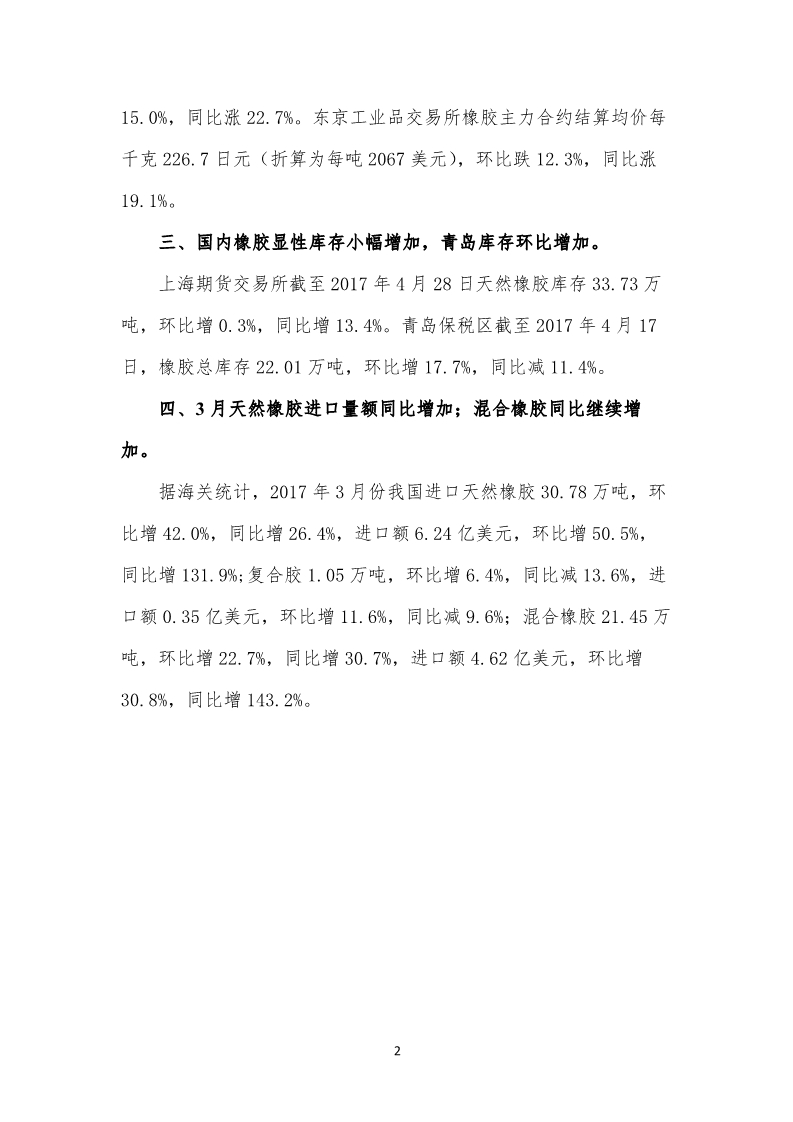 2017年4月份天然橡膠市場監(jiān)測報(bào)告
