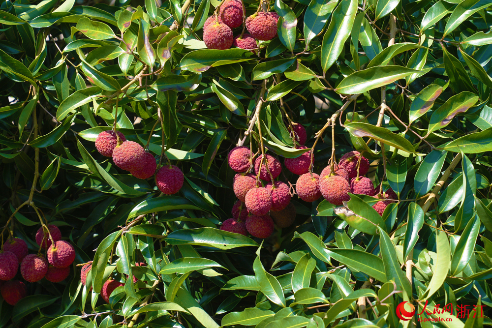 人民網(wǎng)溫州8月10日電 (劉欣蔚、陳陸洵)近日,溫州市蒼南縣馬站鎮(zhèn)的無(wú)核荔枝陸續(xù)進(jìn)入采摘期,有效填補(bǔ)了廣東、福建等主產(chǎn)區(qū)荔枝下市后的市場(chǎng)空窗期。一串串紅彤彤、飽滿(mǎn)圓潤(rùn)的荔枝掛滿(mǎn)枝頭。