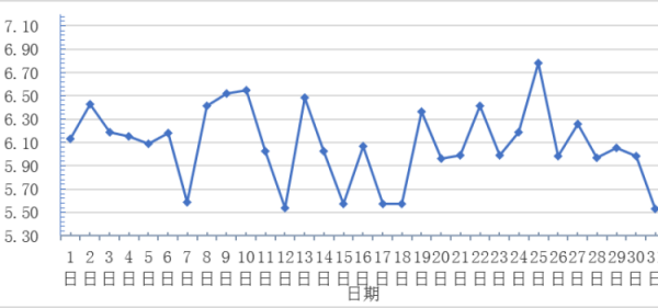 12月,全國重點(diǎn)監(jiān)測農(nóng)產(chǎn)品批發(fā)市場香蕉總交易量達(dá)2.4萬噸,同比下降14.3%,環(huán)比基本持平;總交易價值13441.7萬元,同比下降20.3%,環(huán)比下降7.0%。日平均價格最高為6.8元/千克,最低為5.5元/千克,全月平均價格為6.1元/千克,同比上漲5.2%,環(huán)比下降4.7%(每日價格變化如圖)。