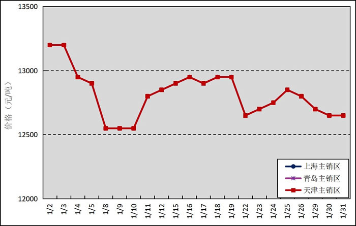 國內(nèi)主銷區(qū):1月,國產(chǎn)全乳標準膠上海市場平均價格12816元/噸,環(huán)比上漲202元/噸,最高價為13200元/噸,最低價為12550元/噸;青島市場平均價格12816元/噸,環(huán)比上漲202元/噸,最高價為13200元/噸,最低價為12550元/噸;天津市場平均價格12816元/噸,環(huán)比上漲202元/噸,最高價為13200元/噸,最低價為12550元/噸。