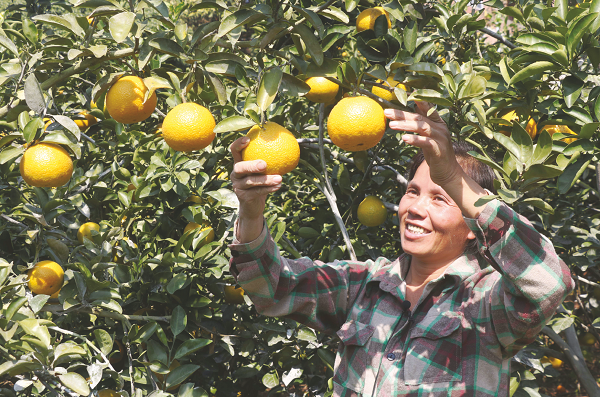 一個(gè)個(gè)碩大的“黃金果”掛滿枝頭,種植戶喜笑顏開(kāi)。(黃曉君 攝)