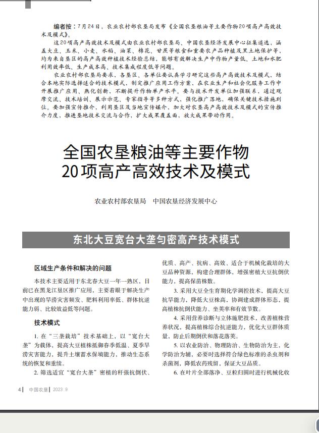全國(guó)農(nóng)墾糧油等主要作物20項(xiàng)高產(chǎn)高效技術(shù)及模式