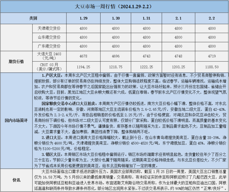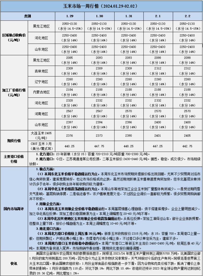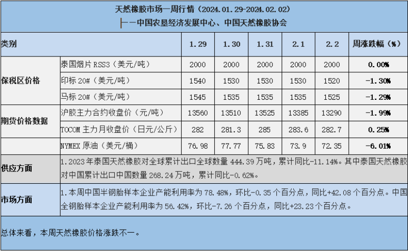 天然橡膠、大豆、玉米市場一周行情(2024.01.29-02.02)