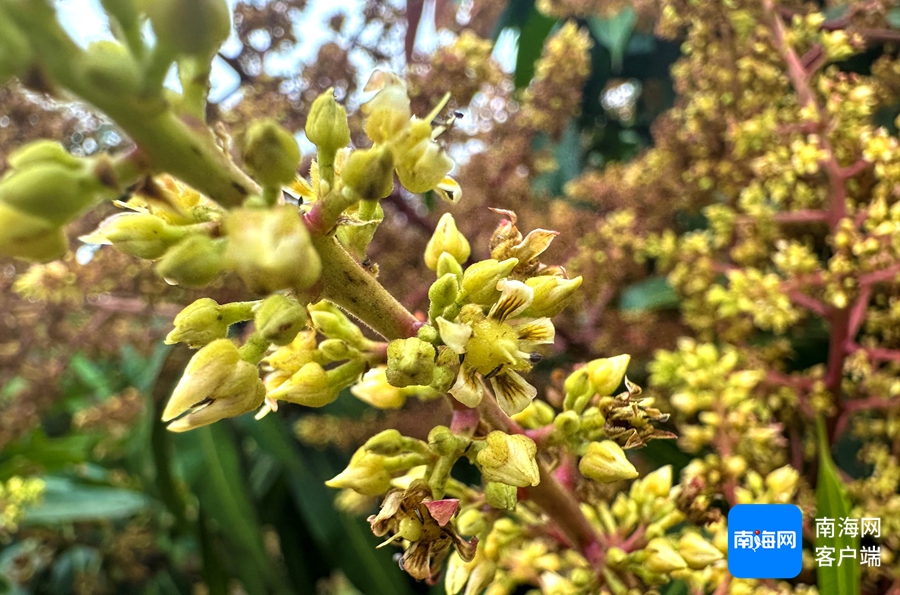 南海網(wǎng)2月18日訊(記者 劉孫謀)在三亞市崖城郎典村的芒果種植園里,可以看到金色芒果花在盛開,高處俯看下去,一片金黃浪花在擺動(dòng),滿山遍野全是芒果樹。作為國(guó)內(nèi)重要的芒果產(chǎn)區(qū),海南的芒果產(chǎn)量占據(jù)全國(guó)總產(chǎn)量的30%左右。而在海南各市縣中,三亞的芒果種植面積和產(chǎn)量均位居榜首。果樹上掛滿紅彤彤的芒果,碩果累累的芒果將枝頭壓彎。