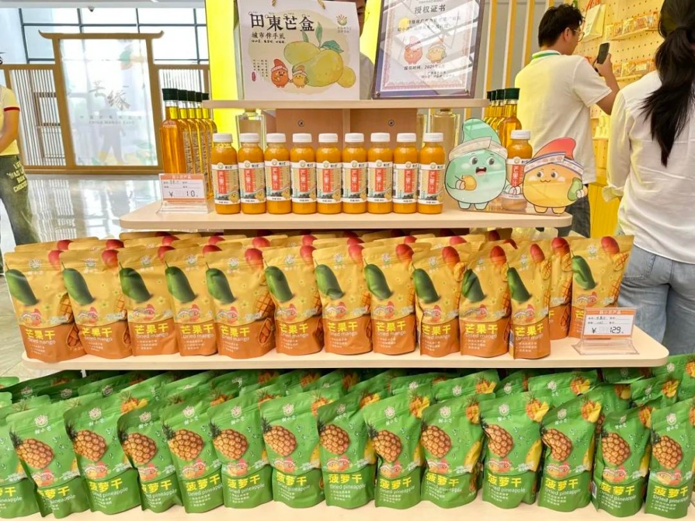 活動(dòng)中,百色12個(gè)縣(市、區(qū))農(nóng)特產(chǎn)品和文創(chuàng)產(chǎn)品,以及來(lái)自國(guó)家芒果種植資源圃的“熱品4號(hào)”“桂熱芒10號(hào)”“泰國(guó)金白花”等百余種芒果新品種(品系)集中亮相。“芒果種質(zhì)資源太神奇了,單單是種皮就有這么多顏色!”“芒果蘸辣椒面我還是第一次嘗試!”“甜小芒這個(gè)IP既有廣西的民族特色,又有農(nóng)業(yè)特色!”每個(gè)展位前都擠滿了觀眾,大家嘗味道、問(wèn)價(jià)格,熱鬧非凡。