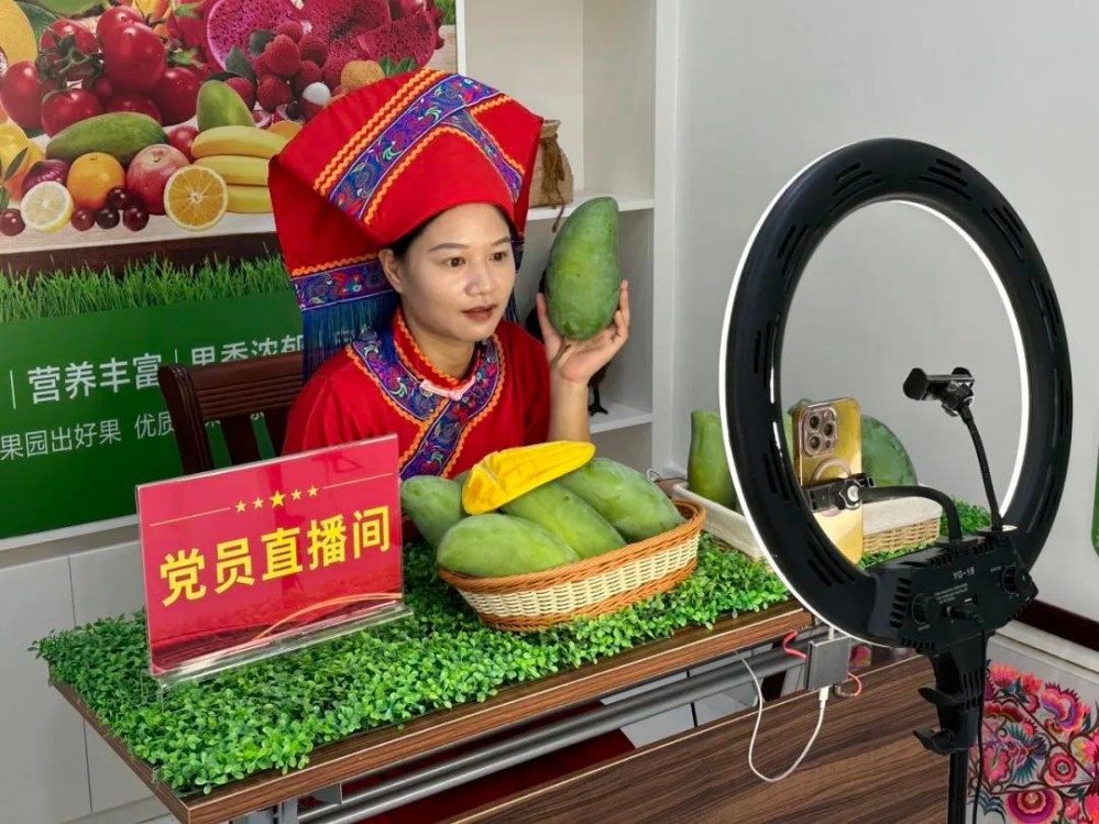 電商直播間,主播們對(duì)著鏡頭熱情地介紹著芒果產(chǎn)品,通過(guò)一根網(wǎng)線將豐收的喜悅傳遞給更多的人。