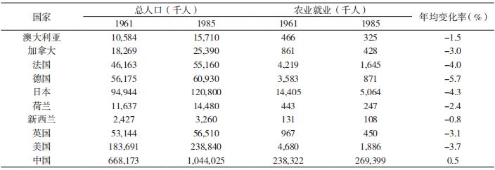 表3 發(fā)達(dá)國(guó)家人口與農(nóng)業(yè)就業(yè)變化
