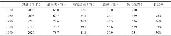 表2 日本食物營(yíng)養(yǎng)及食物自給率變化