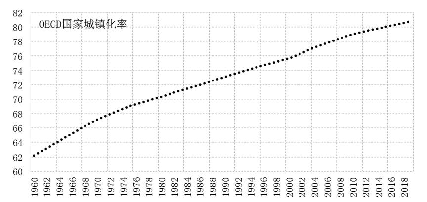 圖1 OECD國(guó)家城鎮(zhèn)化率(%)