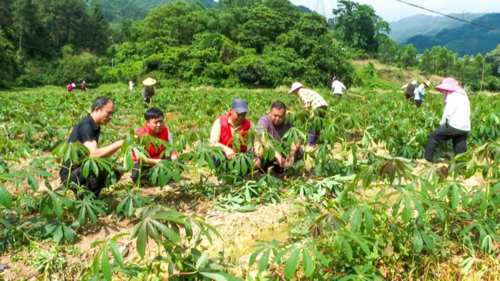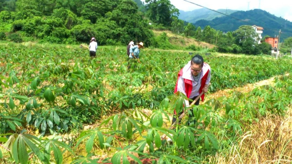 連日來,在該市龍懷鄉(xiāng)新安社區(qū)連片面包木薯種植基地,一片綠意盎然的景象映入眼簾。社區(qū)黨員干部和農(nóng)服中心技術(shù)員與農(nóng)戶們一起勞作,除草、施肥,做好木薯的田間管護(hù)工作。