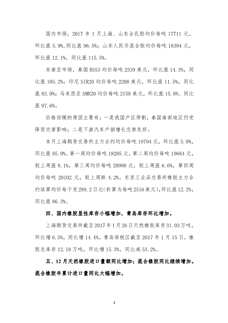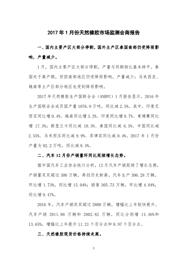 2017年1月天然橡膠市場監(jiān)測會商報告