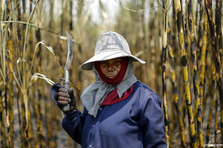 泰國Ratchaburi 省一名蔗農(nóng)勞作時給記者擺拍(Reuters)