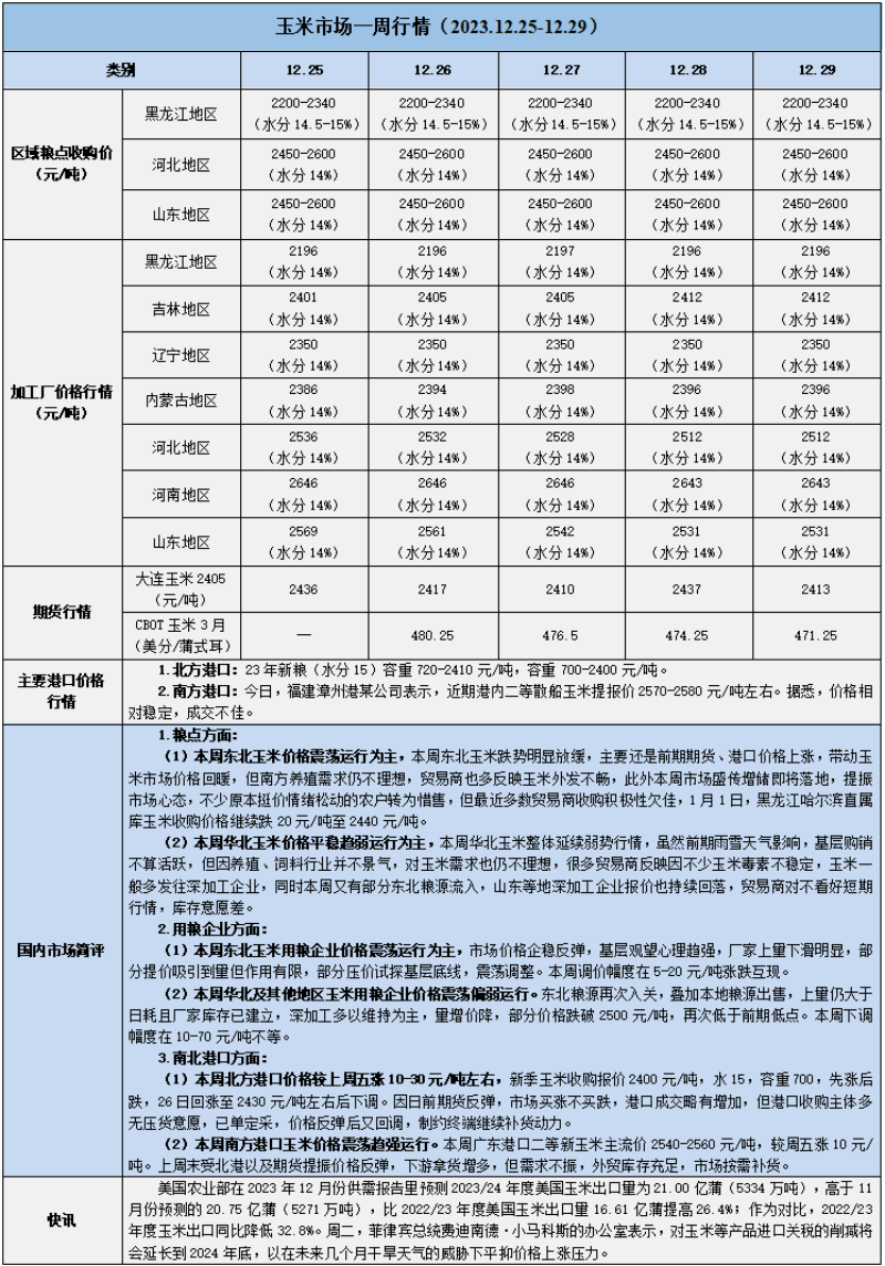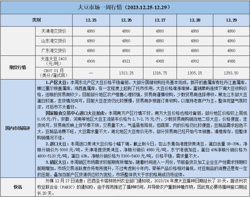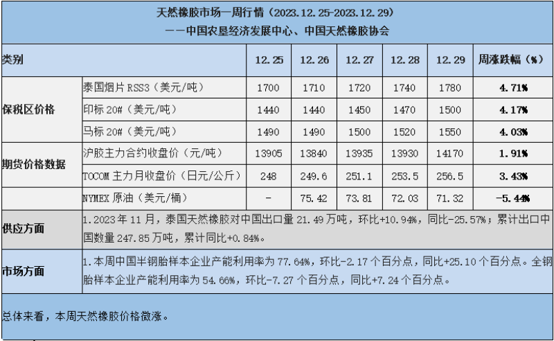 天然橡膠、大豆、玉米市場一周行情(2023.12.25-12.29)