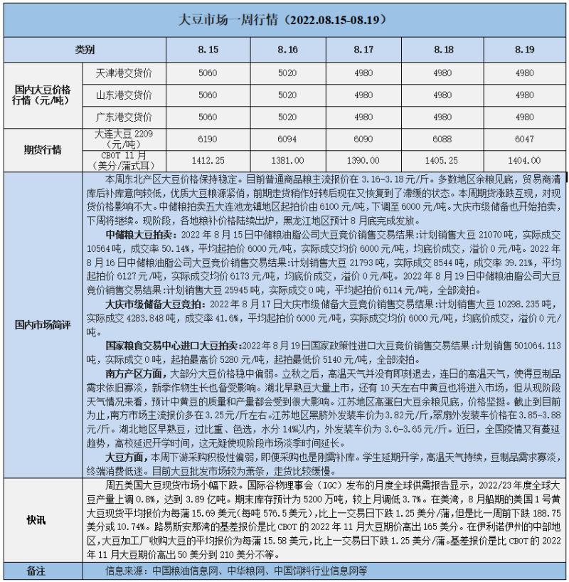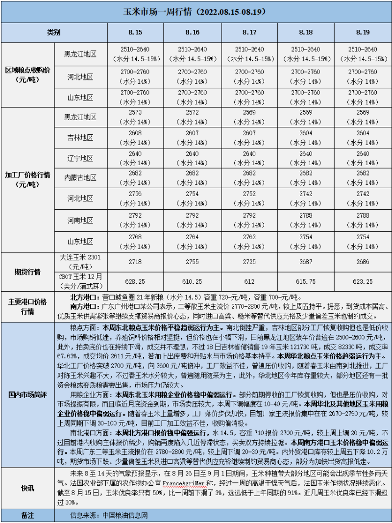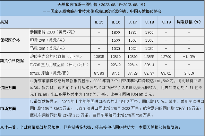 天然橡膠、大豆、玉米市場一周行情(2022.08.15-08.19)