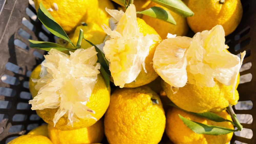果園占地45畝,內(nèi)植1000株小樹與3000株大樹。小樹單株掛果3至10斤,果實圓潤飽滿;大樹則碩果累累,單株結果可達50至60斤,盡顯豐產(chǎn)之姿。得益于當?shù)氐锰飒毢竦淖匀粭l件與科學精細的管護,此地產(chǎn)出的黃金貢柚果大皮薄、果肉晶瑩剔透,一口咬下,清甜多汁、脆嫩爽口,且富含維生素C,實為冬日養(yǎng)生之佳品。值得一提的是,果子采摘后放置七天回糖,口感會愈發(fā)清甜。