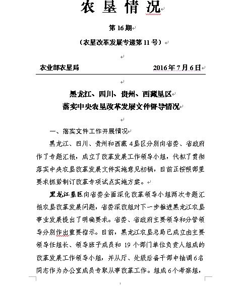 農(nóng)墾情況第16期(農(nóng)墾改革發(fā)展專遞第11號)