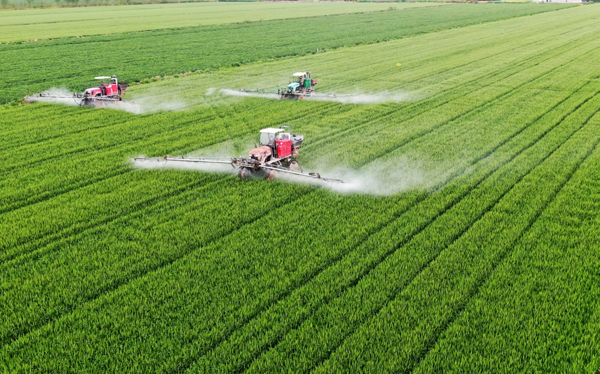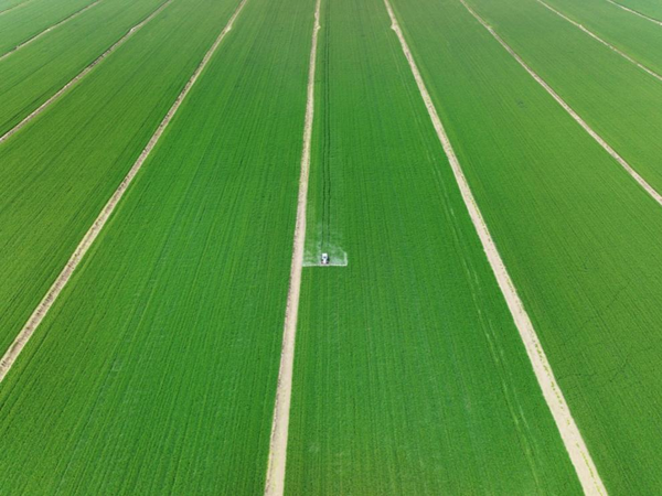 焦崗湖農(nóng)場搶抓雨后間隙,針對場內不同播期的小麥,因時因地制宜開展“一噴三防”作業(yè),確保防治及時、無遺漏。(路 豪)