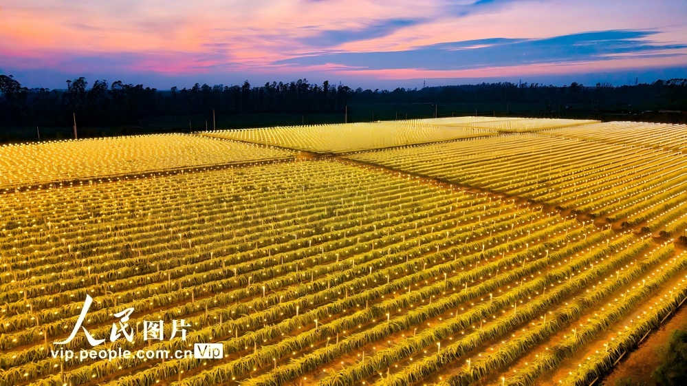 立冬時節(jié),北海市合浦縣石灣鎮(zhèn)清水村火龍果種植基地利用現(xiàn)代化科技在夜間給火龍果補光,促進火龍果的光合作用,讓火龍果擁有良好的生長環(huán)境,進一步提高火龍果產(chǎn)量,增加出果批次,助力果農(nóng)增產(chǎn)增收。林啟波攝(人民圖片網(wǎng))