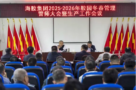 11月20日,海南橡膠在陽江基地分公司舉辦2025—2026年膠園冬春管理誓師大會暨生產(chǎn)工作會議。這是海南橡膠全面推進基地改革以來召開的首次現(xiàn)場會,會議以“現(xiàn)場觀摩+經(jīng)驗交流+部署動員”的形式進行,旨在進一步統(tǒng)一思想共識、堅定改革信心、保持戰(zhàn)略定力,持續(xù)推進標(biāo)準(zhǔn)化膠園建設(shè),提升橡膠產(chǎn)量與品質(zhì),迅速掀起冬春管工作熱潮。
