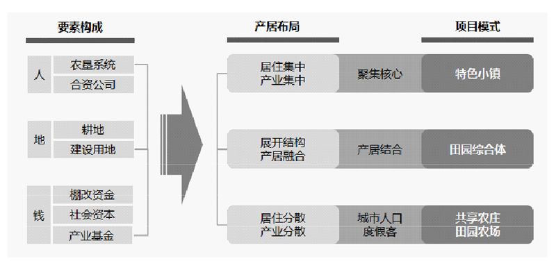 農(nóng)墾系統(tǒng)合理的產(chǎn)居結(jié)構(gòu)離不開人、地、錢的要素合理配置。結(jié)合特色小鎮(zhèn)、田園綜合體、共享農(nóng)莊、田園農(nóng)場等項目,形成一套以農(nóng)旅融合為動力、推動農(nóng)墾系統(tǒng)全面實施鄉(xiāng)村振興戰(zhàn)略的解決方案和模式。